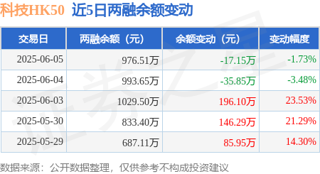 科技HK50:6月5日融资买入619.75万元,融资融券余额976.51万元